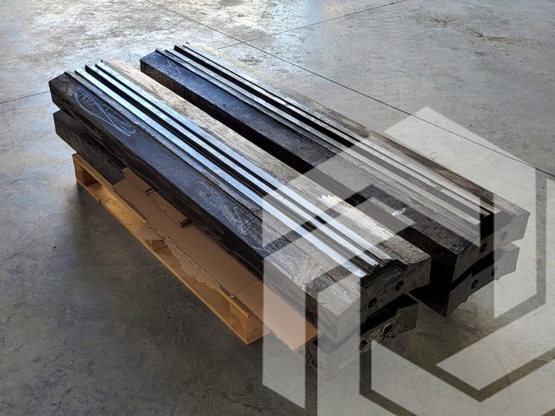 Pièces d'usure pour malaxeurs à béton : bras et accouplements de malaxeurs, lames de malaxeurs, pièces d'usure pour corps de malaxeurs et roulements de malaxeurs.