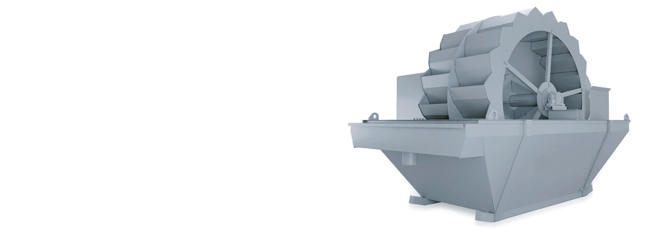 Машини для промивання ковшових коліс зазвичай використовуються для зневоднення піску або дрібних відходів шляхом видалення глини та мулу з шламу, що надходить з промивного екрану, для вилучення високоякісного дрібного піску. Він складається з великої спіралі з ковшами, що обертаються в трубі. Після того, як матеріал був очищений і промитий всередині резервуара, ковші збирають матеріал і переміщують його до розвантажувального кінця, зневоднюючи його.